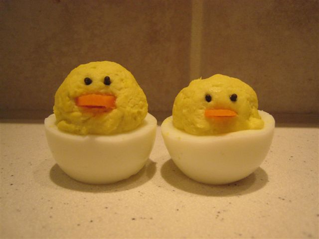 So, F&B and I were boiling eggs this morning for Ben's snack when it occurred to me that we needed to do something cute with the eggs for Easter. We do the egg mold thing frequently enough that it's not new and exciting, so I started thinking how to make something else cute.