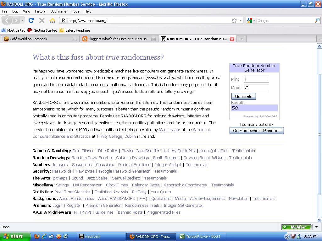 I plugged all the comments into my handy dandy spreadsheet. OK, it's really just an Excel page with everyone's name/login name so I can figure out who won. Headed over to random.org, plugged in the numbers, and the winner is ...