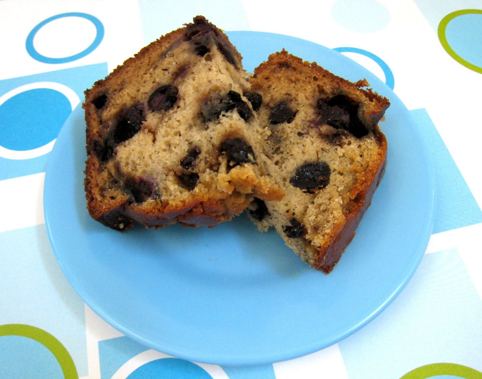 My note: After blending in the dry ingredients, I added my blueberries so they wouldn't get mashed in the blending process.