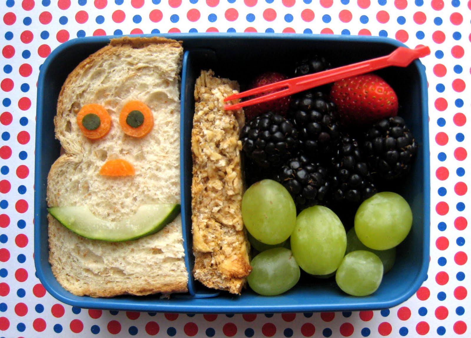 love these sandwich faces, and great idea for car-friendly bentos. just "liked" you - good luck!