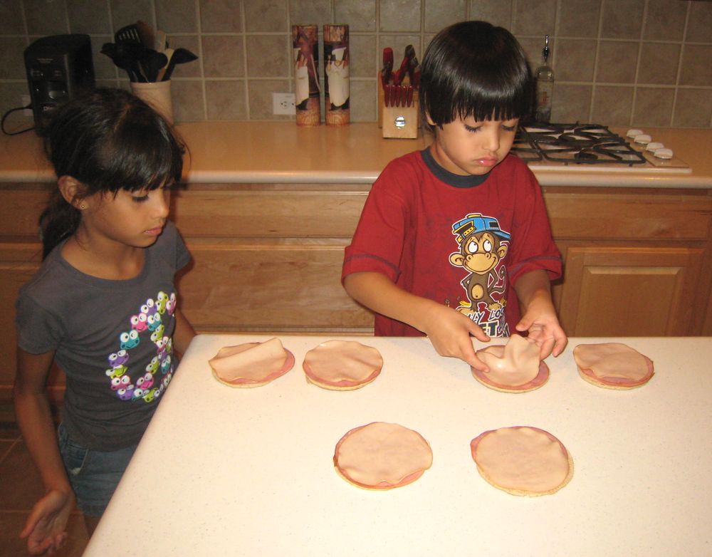 The kids are easily able to make their own sandwiches, we did turkey, ham and cheese on Nature's Own Multigrain Sandwich Rounds:
