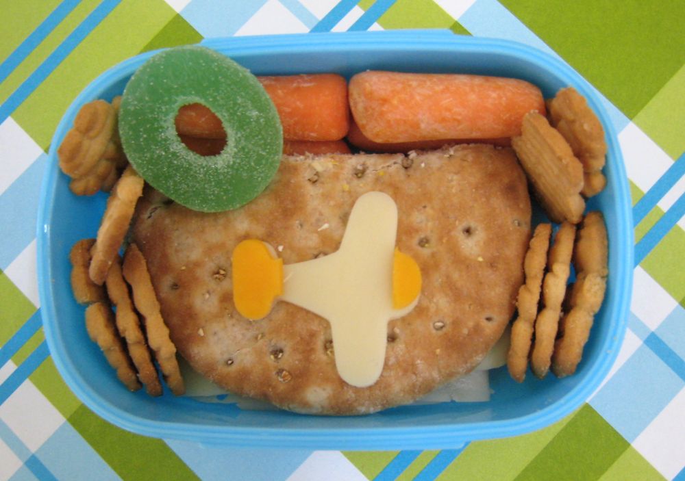 Ben has the other sandwich, but he cut out an airplane out of swiss (so I'm told) and Faith helped him add orange decorations to it. He also has carrots & teddy cookies, but he picked a Lifesaver gummy from the Halloween stash.