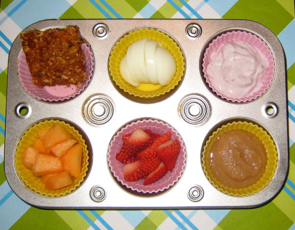 The kids have homemade apricot-chocolate chip granola squares (I know, but it's just a wee bit of chocolate and there is no additional sugar in those), a boiled egg, blueberry Greek yogurt, cantaloupe, strawberries, and homemade pear sauce that I made Sunday afternoon (also no added sugar, just cinnamon).
