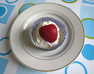 We've been on a bit of a cheesecake kick lately. It's yummy, not overly sweet, and makes a nice summer dessert. This week, for The Kids Cook Monday, F&B and I made a nice simple cheesecake that lends itself well to any kind of topping. This time, we added a nice dollop of whipped cream and some fresh sliced strawberries.
