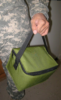 And because he is awesome and tends to humor me, doesn't the green bag go nicely with his camo? Even in uniform, it's important to coordinate. ;o)
