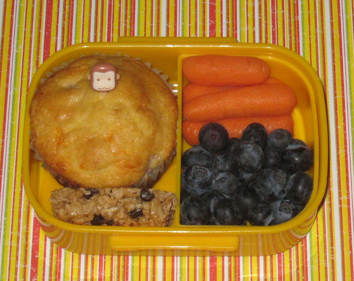 Today, however, we went with food that was already ready as the house was flipping COLD this morning, so getting out of bed was a chore. Both kids took one of yesterday's stuffed muffins, along with some granola bar and carrots. Ben also had blueberries, but Faith is not a fan of raw blueberries so opted for cucumber slices instead.