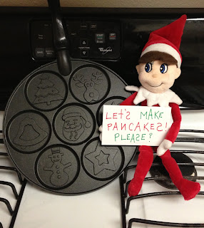 David the Elf has also been very very busy in our house.  If you're looking for EASY elf ideas, we've been taking pictures of his adventures here.  This morning, he was waiting in the kitchen with a great idea.