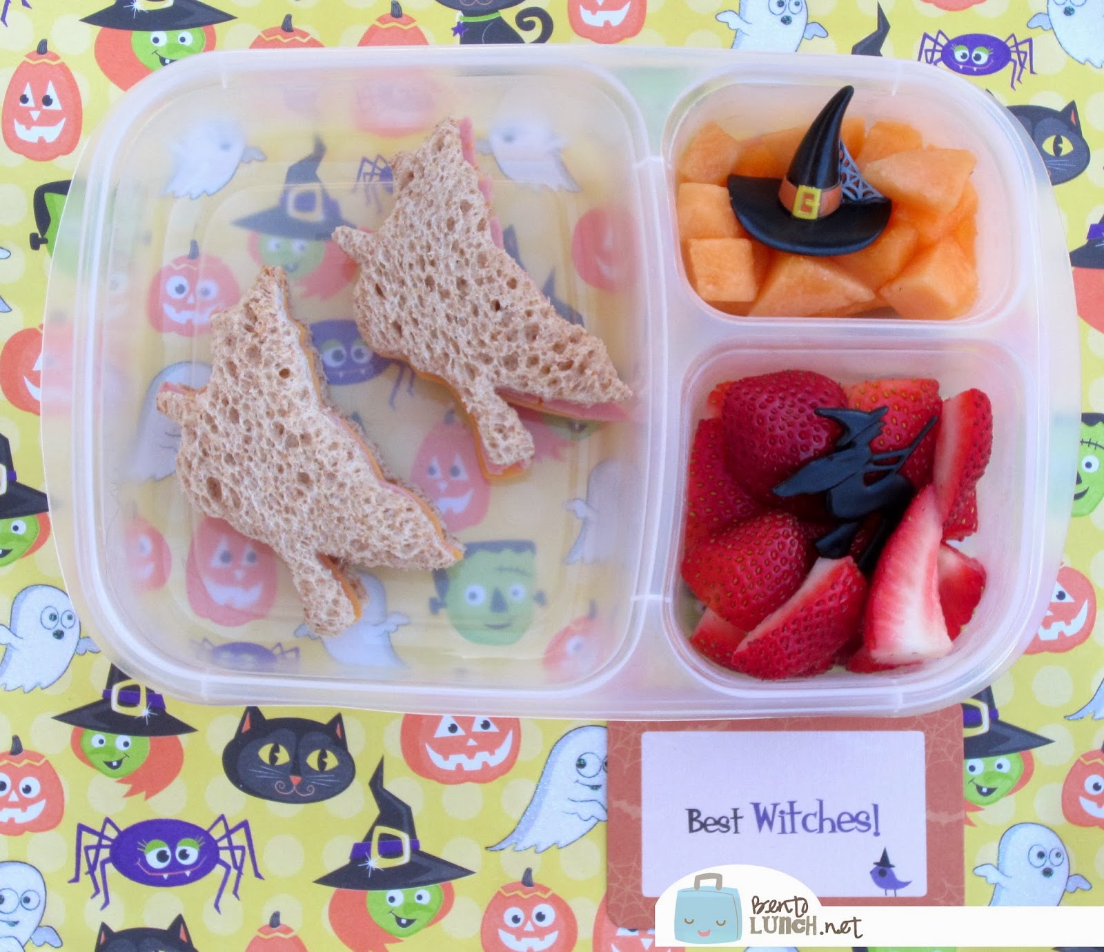 While the boy had bats, the girl opted for witches. We love Halloween, so we're milking the Halloween lunches every chance we get!