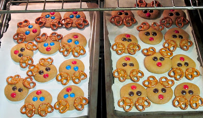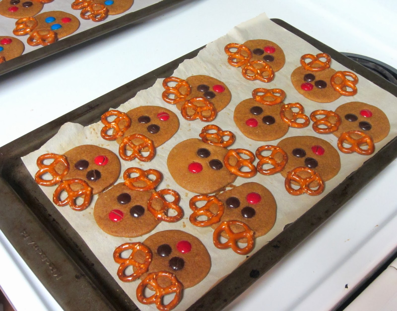The gingerbread reindeer have long been a favorite for F&B, and they couldn't be easier to make. Some years, I do make my own gingerbread dough, but being pressed for time this year? I bought Pillsbury gingerbread dough. It's just as yummy and cut down several steps in the process.