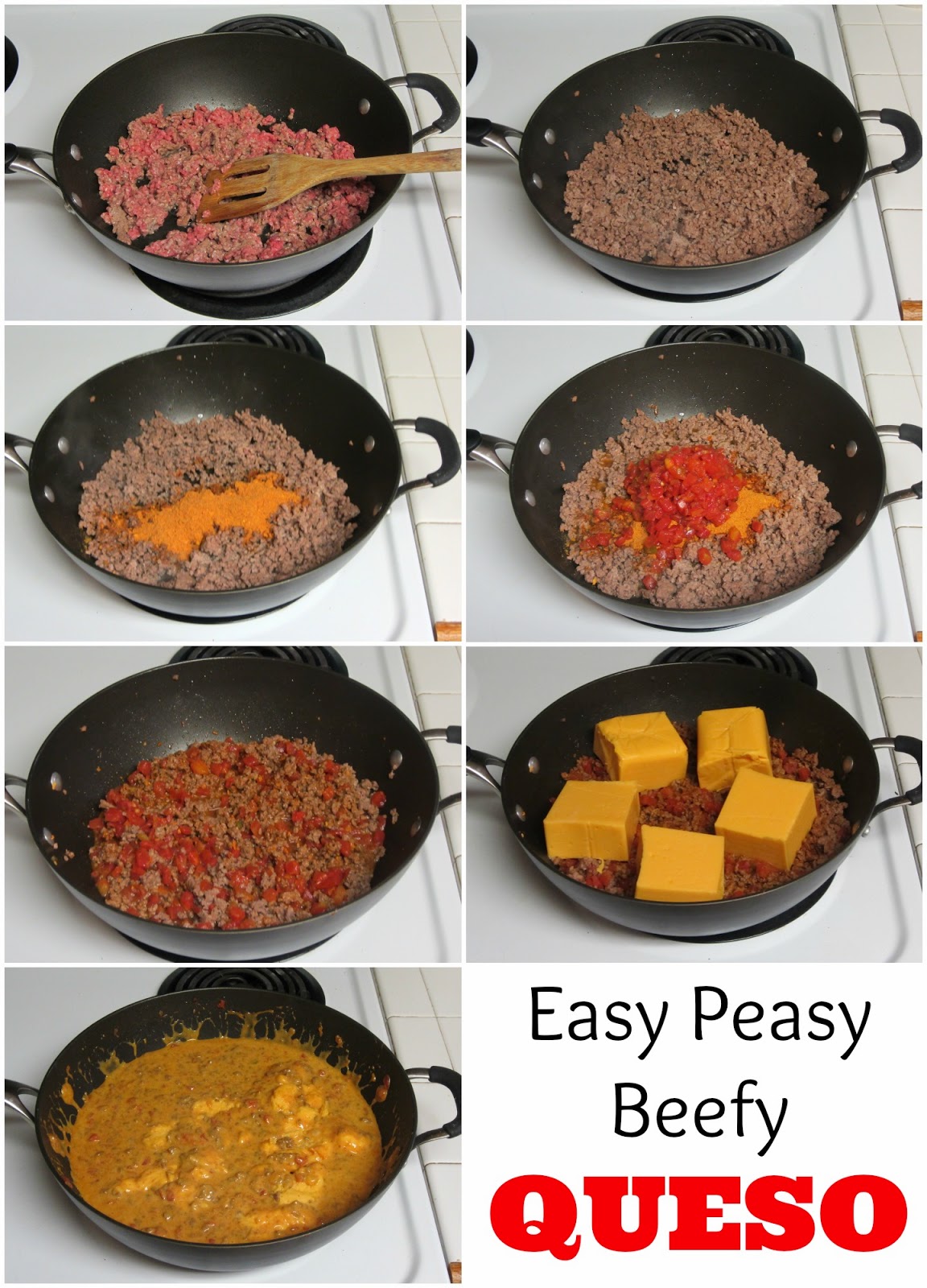 Cook covered over low heat, stirring frequently until the cheese has melted and blended with the beef.