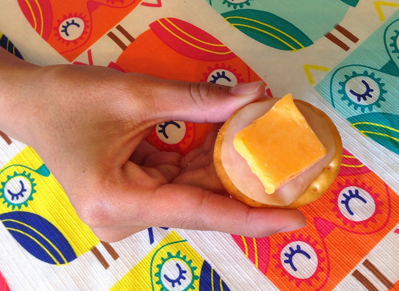 The snack tray size is perfect for the three of us to nosh on and we are loving the new flavor options. While the traditional pepperoni and salami remains a favorite, the turkey and ham options are also yummy! Today we had the smoked turkey and cheese version which totally hit the spot and made waiting for a 7pm dinner a lot easier to handle.