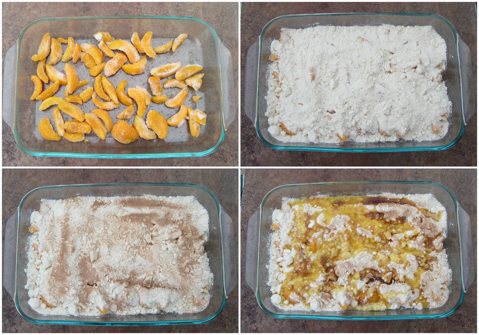 I love crumbles and dump cakes and those kind of ideas, so with one last bag of frozen peaches, Benjamin made an Easy Peasy Peachy Crumble!