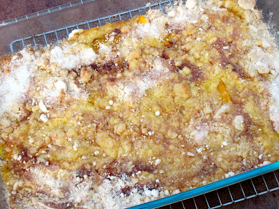 Sprinkle the peaches with dry cake mix.