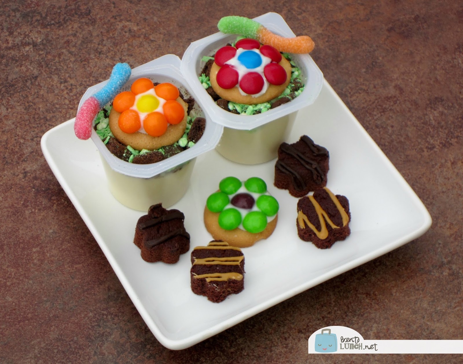 Do you love the other little flowers? Those are made from an awesome new product from Snack Pack! Snack Pack pudding bars are all new to Walmart! They come both chocolate fudge and chocolate caramel flavors.