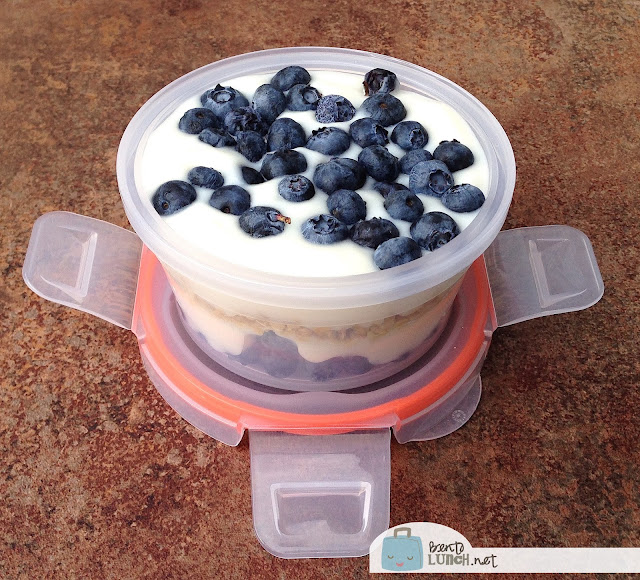 The container used is a Snapware®1.21-Cup Total Solution™ Round Plastic Food Storage With Lid and we were very please with how well it sealed! Yogurt is a great test to see how well food stays inside any container.