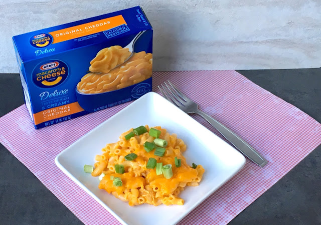With leftover cooked chicken (or a few chicken breasts overnight in the crockpot, my secret tip for when I need chopped or shredded chicken) and KRAFT Deluxe Macaroni & Cheese Dinner, I only had to borrow the oven for about 10 minutes to finish cooking it. Even better, the kids and the husband loved it, so it's not just going to be a holiday recipe around here.