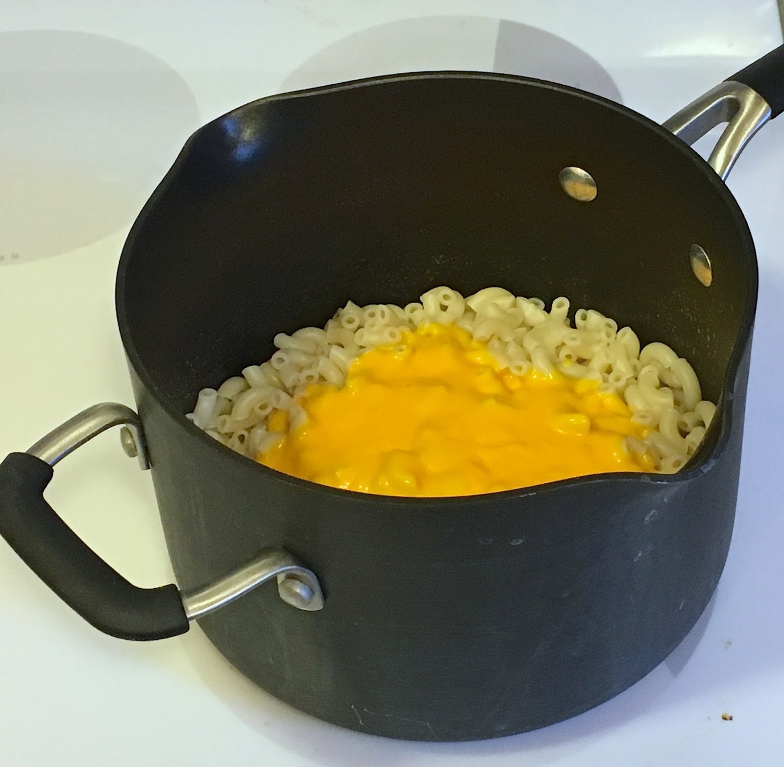 Make your macaroni and cheese per the package directions, set aside.