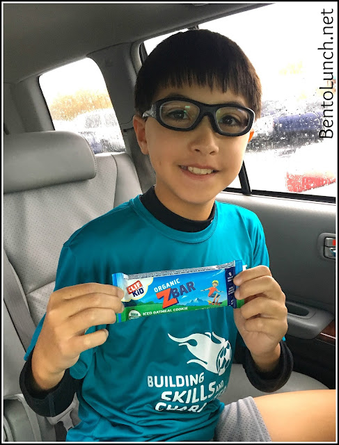 We love pairing them up with a fun bento snack box to make sure that Ben has something to eat after soccer. In this box, I picked easy to eat snacks--a sliced boiled egg and cheese chunks for protein, sliced grapes and a peeled clementine orange for some fruit, and a CLIF Kid Zbar® for extra energy. Of course, we've got plenty of water for hydration too.