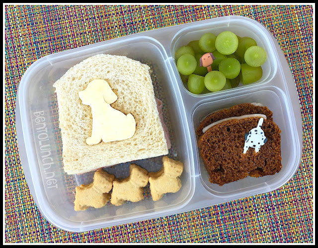 We went through all our lunch stuff right before the move back to Colorado and kept things that are more in line with the amount of food that the kids now eat. We still kept a lot of fun stuff because we're all about making lunch fun. And, as the lunch below shows, we love all things puppy related.